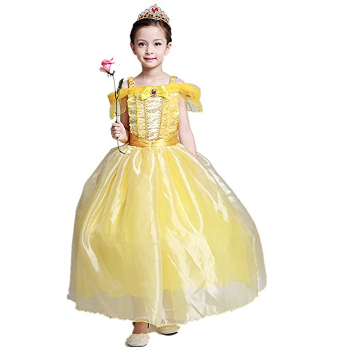 Starkma Girls Princess Belle Costume Dress Party Cosplay Costume Dress Crown and Wand