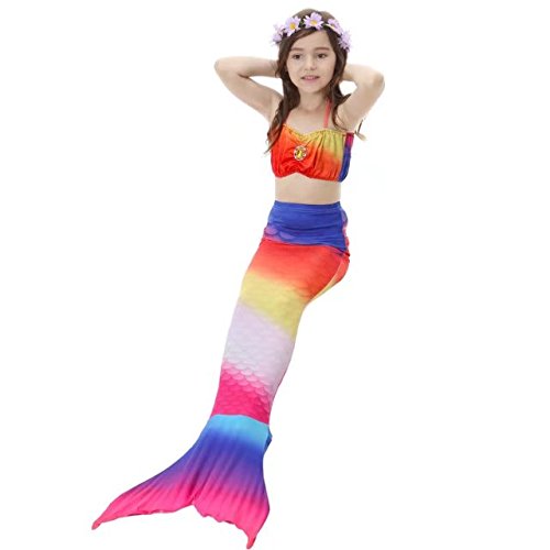 Girls 3 Pcs Mermaid Tail Swimsuit Sets Sea-Maid Swimwear Bathing Suit