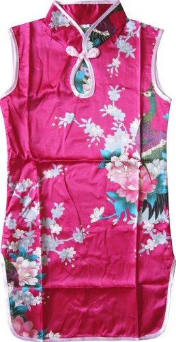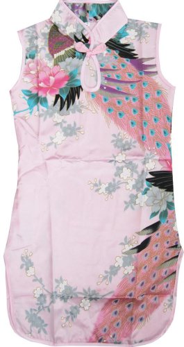 Sunny Fashion Girls Dress Pink Peacock Silk Cheongsam Chinese