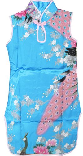 Sunny Fashion Girls Dress Peacock Artificial Silk Cheongsam Chinese