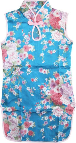 Sunny Fashion Girls Dress Blue Flower Silk Cheongsam Chinese