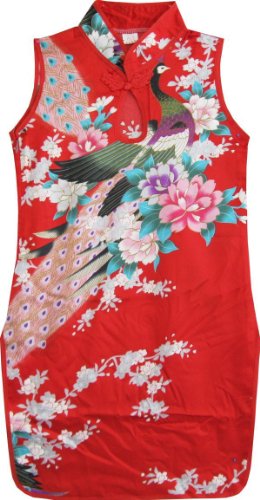 Sunny Fashion Girls Dress Red Peacock Silk Cheongsam Chinese