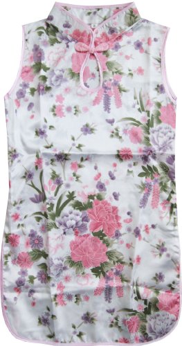 Sunny Fashion Girls Dress White Flower Silk Cheongsam Chinese