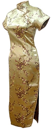 7Fairy Women’s Sexy Vtg Gold Floral Long Chinese Prom Dress Cheongsam
