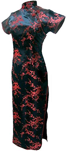 7Fairy Women’s Vtg Black&Red Floral Long Chinese Prom Dress Cheongsam