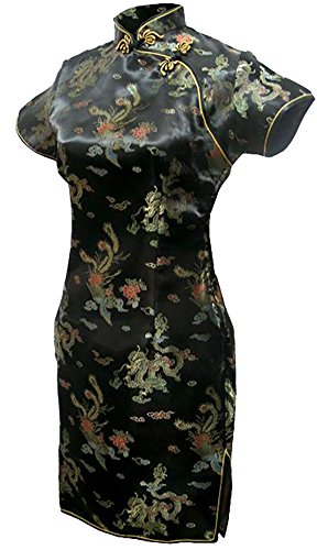 7Fairy Women’s Vtg Black Mini Chinese Evening Prom Dress Cheongsam