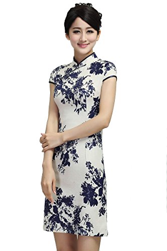 ACVIP Women Cheongsam Chinese Dress Cup Sleeve Flowers Pattern
