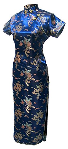 7Fairy Women’s Vtg Navy Long Chinese Evening Dress Cheongsam Qipao