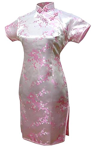 7Fairy Women’s Vtg Pink Floral Mini Chinese Evening Dress Cheongsam
