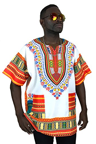 Vipada’s Dashiki Shirt African Top Men’s Dashiki White and Red New 3XL