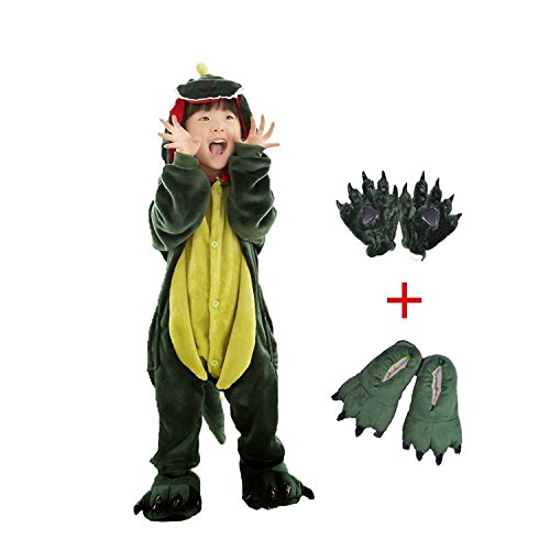Dreamowl Kids Dinosaur Animal Costume-Childrens Plush Pajamas attach shoes paw