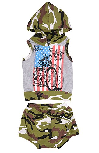 Baby-boys Sleeveless Hoodie Shirt Flag Camouflage Short Pants Outfit Clothes Set