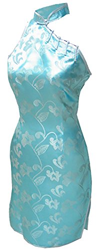 7Fairy Women’s Light Blue Halter Floral Mini Chinese Dress Cheongsam