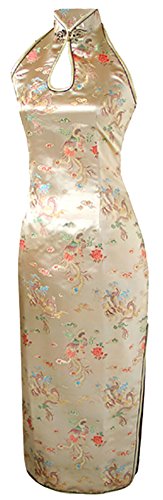 7Fairy Women’s Gold Dragon Halter Backless Long Chinese Evening Dress