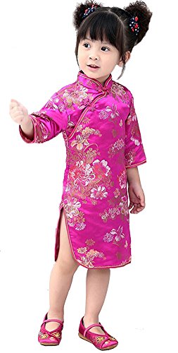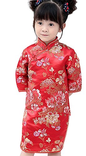 Soyoo 1t-12 Girls’ Brocade Chinese Dress Half Sleeve Red Peony
