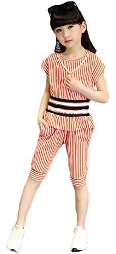 AvaCostume Girls’ 2 Piece Stripes Short Sleeve Top and Cropped Pants
