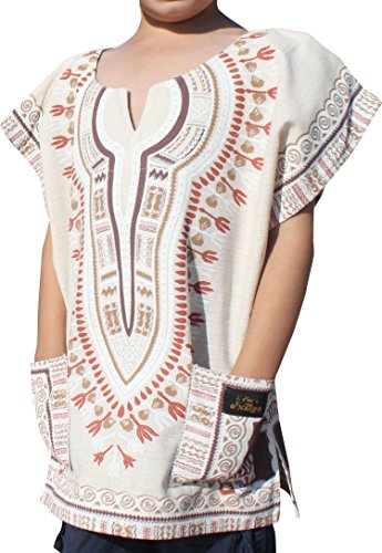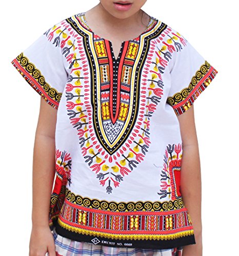 RaanPahMuang Unisex Bright African White Children Dashiki Cotton Shirt