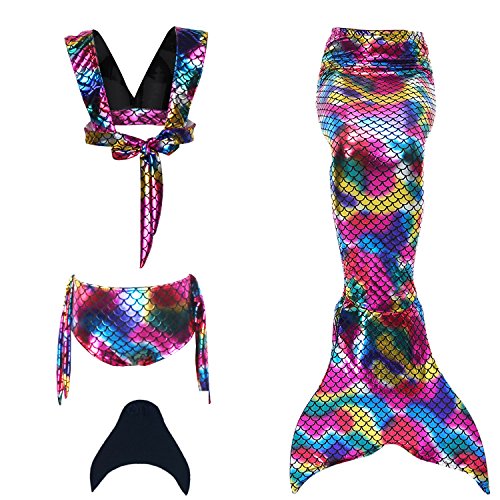 Owone Box Girls 3 Pcs Princess Mermaid Tail Swimmable Bikini Swimsuit Sets Swimwear