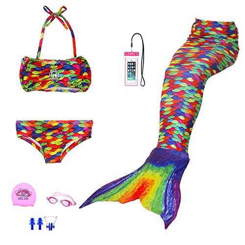 AUIE SAOSA Girl mermaid tail for swimming swimwear cover up sets+girls Goggles 7pcs