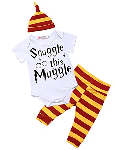 Gprince Baby Boys Girls Snuggle this Muggle Short Sleeve Bodysuit and Striped Pants Outfit with Hat