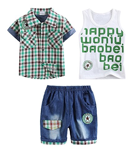 Baby Boy Clothes Sets T shirt Shorts Vest Checkered Short Sleeves Character Pattern Summer Outfits Suit