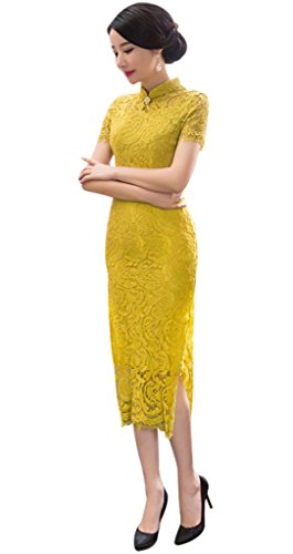 Wincolor Women’s Cocktail Evening Maxi Long Qipao Dress Chinese Traditional Lace Cheongsam