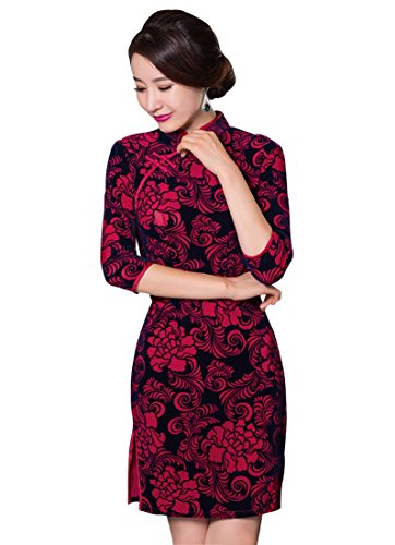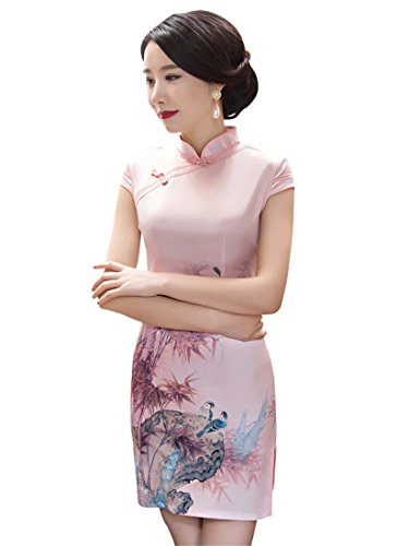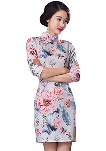 Wincolor Women’s Floral Chinese Traditional Cheongsam Qipao Dress Half Sleeve Cocktail Bridesmaid Dresses