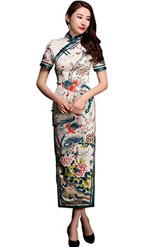 Wincolor Women’s Chinese Traditional Apparel Floral Printed Maxi Long Cheongsam Qipao Dress
