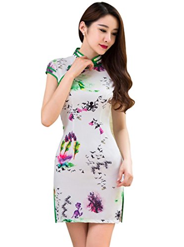 Wincolor Women’s Floral Printed Chinese Traditional Cheongsam Slim Cocktail Party Mini Dress