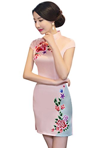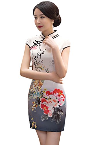 Wincolor Women’s Chinese Traditional Cheongsam Floral Printed Cocktail Party Mini Dress