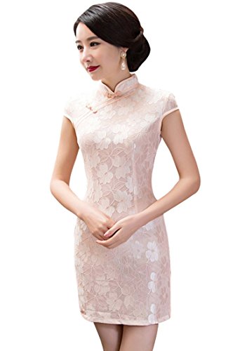 Wincolor Women’s Chinese Traditional Cheongsam Cap Sleeve Floral Lace Qipao Dress