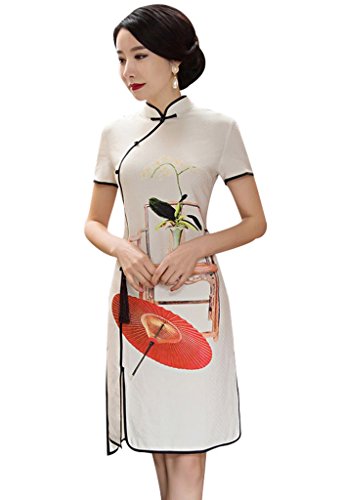 Wincolor Women’s Chinese Traditional Cheongsam Half Sleeve Floral Printed Qipao Dress