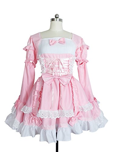Angel Feather Lolita Bonzer Swallowtail Pink Maid Dress Cosplay Costume