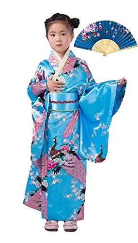 CRB Womens Girls Kimono Japanese Asian Top Dress Robe Sash Belt Fan Set Outfit