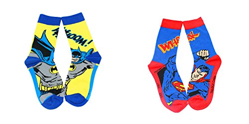 (2-Pack) DC Comics Batman and Superman Crew Socks One Size Fits Most with Gift Box