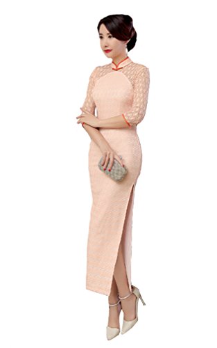 ACVIP Women’s Half Sleeve Lace Long Cheongsam Qipao Evening Wedding Dress Gown