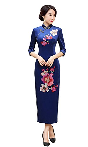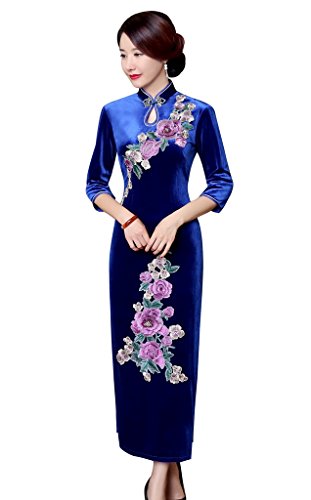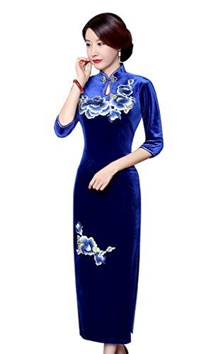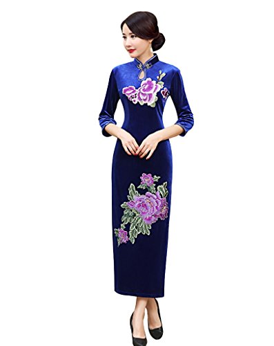 ACVIP Women’s Sequin Flower Embroidered Velvet Long Cheongsam Qipao Evening Wedding Dress
