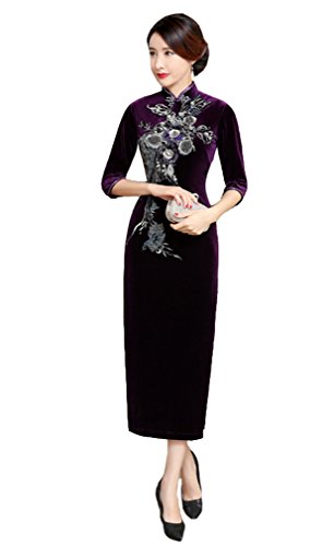 ACVIP Women Flower Embroidered Cheongsam Qipao Evening Party Birthday Dress