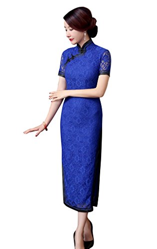 ACVIP Women Flower Lace Short Sleeve Chinese Dress Long Cheongsam