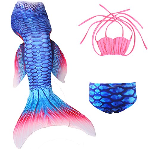 Vamelia Kids Girls Women Sparkle Fin Mermaid Tail Swimsuits Bikini Bathing Set Swimwear Costumes