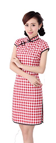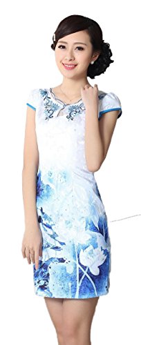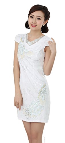 AvaCostume Women’s Silk Chinese Cap Sleeve Retro Qipao Cocktail Mini Dress