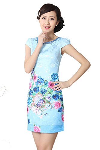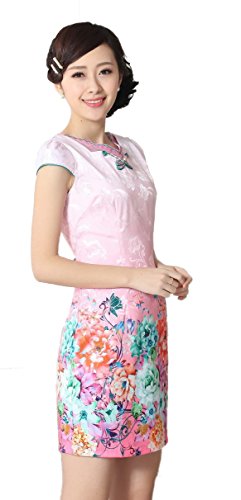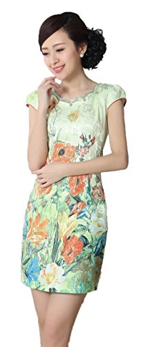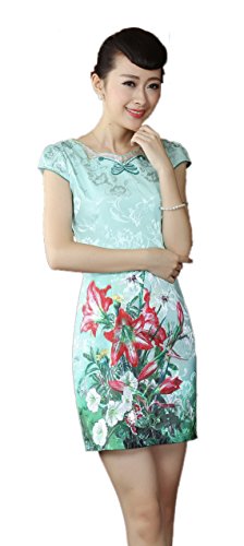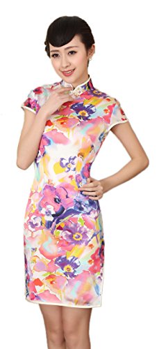AvaCostume Women’s Silk Vtg Flowers Printed Qipao Mini Dress Cheongsam