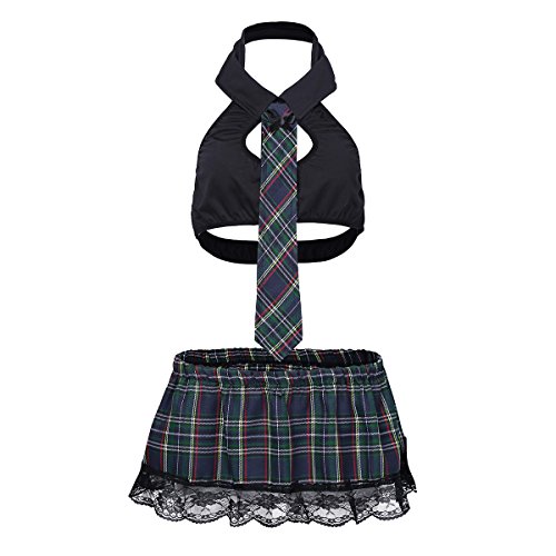 YiZYiF Women Plus Size School Girl Uniform Mini Plaid Skirt Tie Cosplay Costume