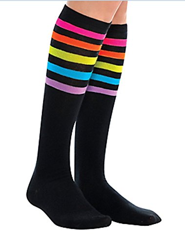 Standard Knee High Socks with Rainbow Stripes Sports Costume Party Apparel, Fabric, 19″.